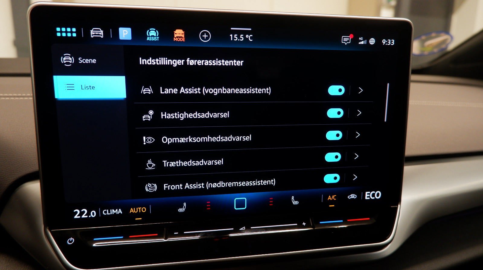 19" alufælge, el indst. forsæder, 2 zone klima, varmepumpe, navigation, android auto, apple carplay, 360° kamera, parkeringssensor (bag), parkeringssensor (for), vognbaneassistent, fjernlysassistent, svingbart træk (elektrisk), kørecomputer, digitalt cockpit, multifunktionsrat, læderrat, el-justerbar lændestøtte, massage i forsæder, el-klapbare sidespejle m/varme, matrix led forlygter, varme i rat, centrallås, fjernb. centrallås, nøglefri adgang, nøglefri tænding, fartpilot, adaptiv fartpilot, udv. temp. måler, sædevarme, 4x el-ruder, el betjente døre, elektrisk parkeringsbremse, trådløs mobilopladning, usb-c tilslutning, håndfrit til mobil, musikstreaming via bluetooth, dab+ radio, regnsensor, dæktryksmåler, skiltegenkendelse, auto hold, træthedsregistrering, bakkamera, automatisk lys