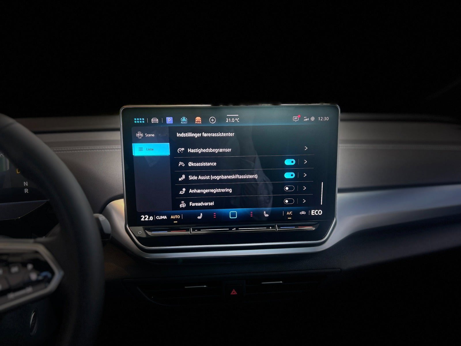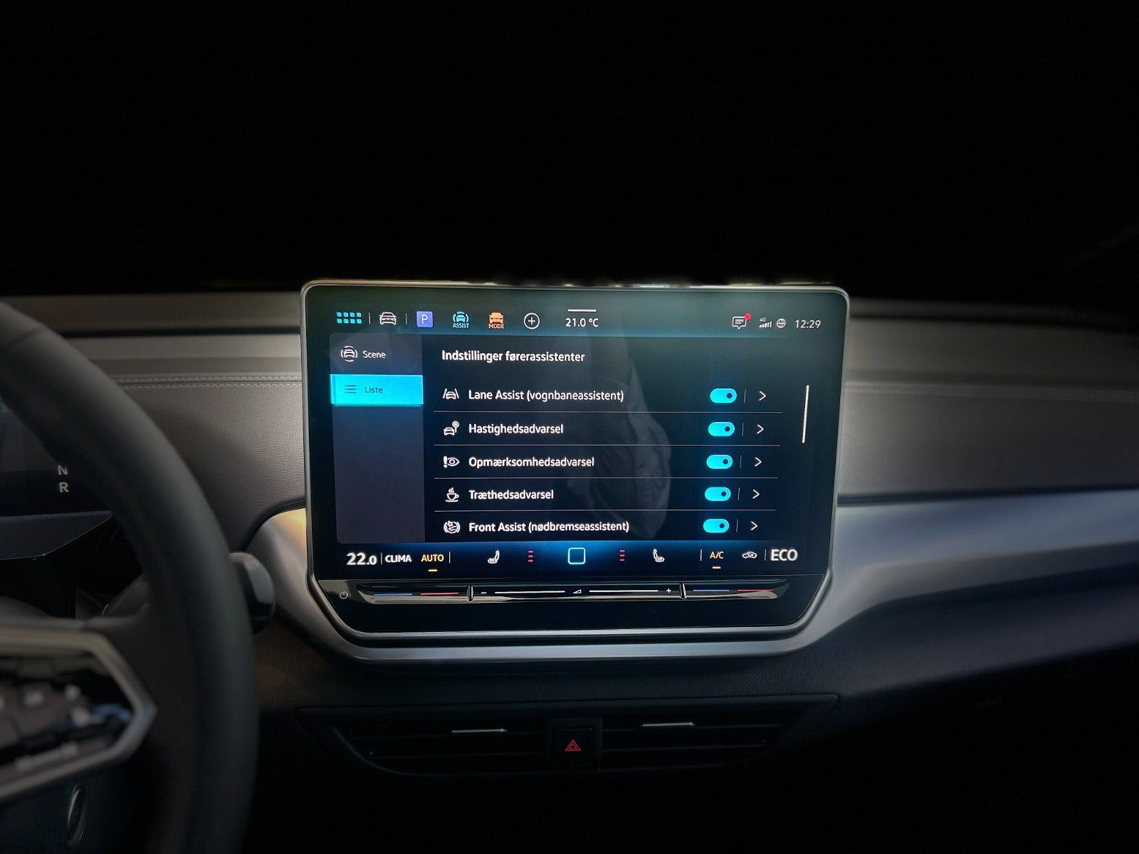kørecomputer, digitalt cockpit, multifunktionsrat, læderrat, el indst. forsæder, 19" alufælge, el-klapbare sidespejle m/varme, el-sidespejle m/varme, el-klapbare sidespejle, el-sidespejle, glastag, matrix led forlygter, mørktonede ruder i bag, svingbart træk (elektrisk), træk, varme i rat, 2 zone klima, varmepumpe, fjernb. centrallås, centrallås, nøglefri adgang, nøglefri tænding, fartpilot, adaptiv fartpilot, udv. temp. måler, adaptiv fartpilot med kø-assistent, sædevarme, aircondition, automatgear, 4x el-ruder, el betjent bagklap, elektrisk parkeringsbremse, trådløs mobilopladning, navigation, android auto, dab+ radio, håndfrit til mobil, apple carplay, usb-c tilslutning, musikstreaming via bluetooth, regnsensor, 360° kamera, parkeringssensor (bag), parkeringssensor (for), dæktryksmåler, træthedsregistrering, skiltegenkendelse, automatisk lys, fjernlysassistent, blindvinkelsassistent, vognbaneassistent, automatisk nødassistent, automatisk nødbremsesystem, auto hold