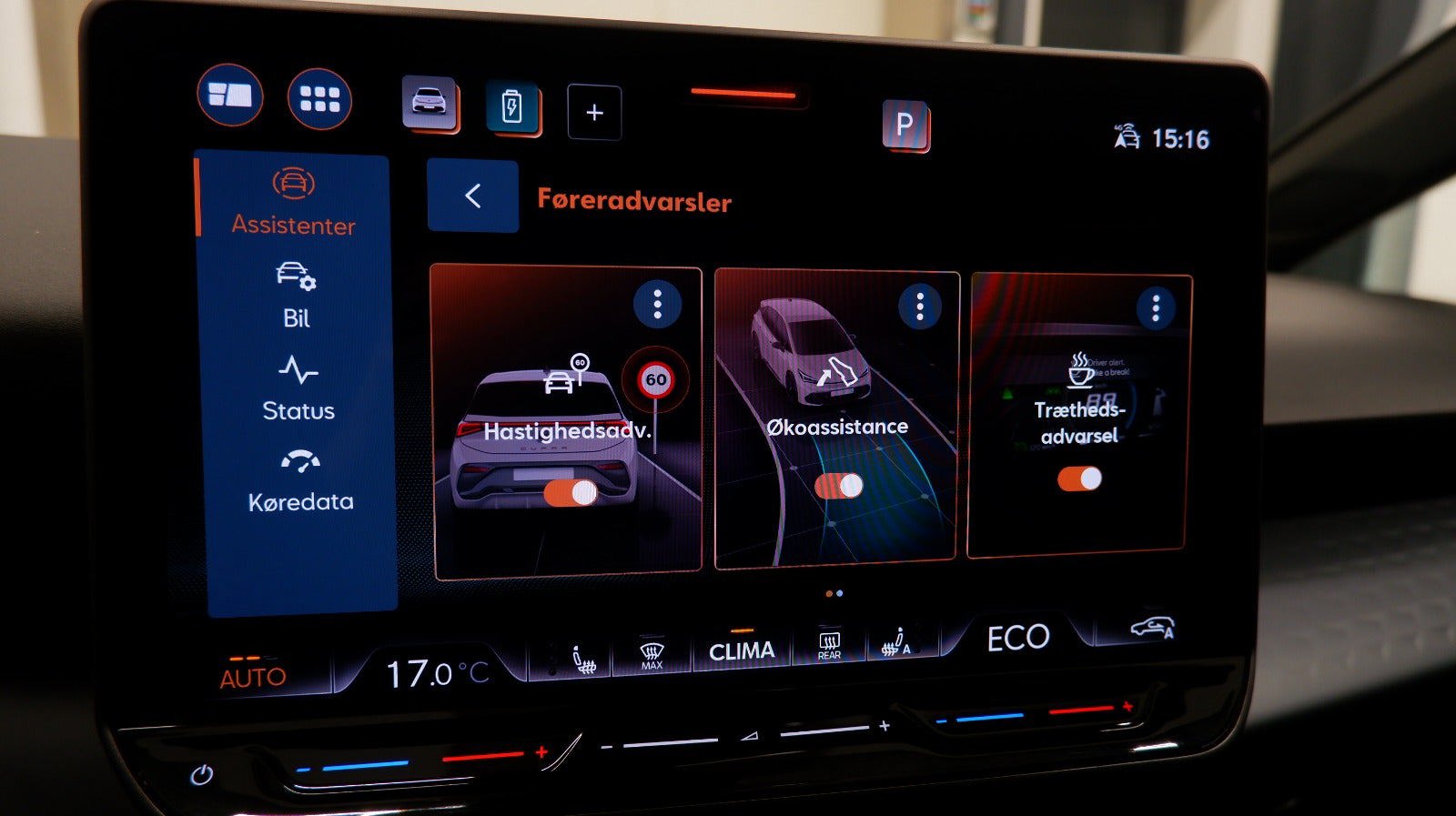 kørecomputer, digitalt cockpit, multifunktionsrat, læderrat, 19" alufælge, el-klapbare sidespejle m/varme, fuld led forlygter, 2 zone klima, varme i rat, centrallås, fjernb. centrallås, nøglefri tænding, fartpilot, adaptiv fartpilot, udv. temp. måler, sædevarme, 4x el-ruder, elektrisk parkeringsbremse, navigation, android auto, apple carplay, håndfrit til mobil, usb-c tilslutning, musikstreaming via bluetooth, regnsensor, parkeringssensor (bag), bakkamera, parkeringssensor (for), dæktryksmåler, vognbaneassistent