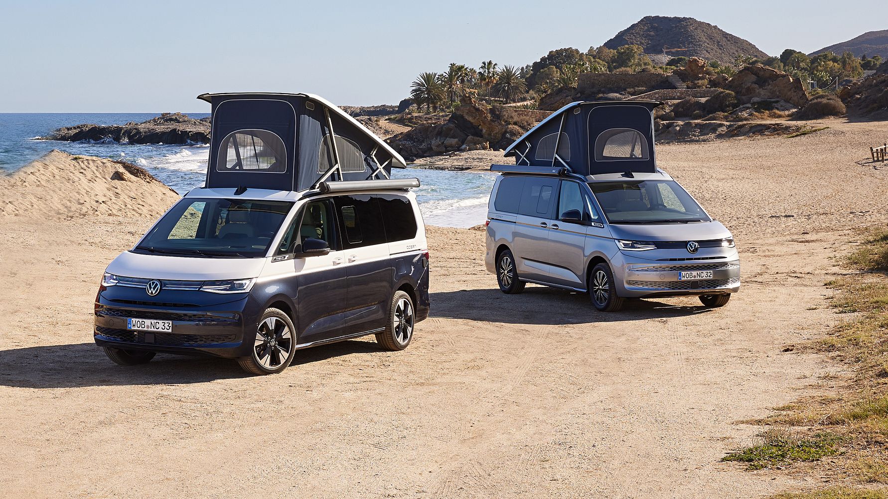Volkswagen Erhvervsbiler vil i Danmark tilbyde den nye California i versionerne Coast og Ocean (hver med et komplet tekøkken i førersiden), der kan opfylde nogle af de mest varierede krav og passe ind i mange livssituationer. Tekøkkenet i Den nye California Coast og Ocean er ekstremt alsidigt. I Ocean er køkkenet designet i de to dekorative trim Platinum Sandwick (lys øvre sektion) og Raven Brushed (mørk nedre sektion). I modsætning til Coast kommer den øverste del i Ocean med det lyse dekorative trim Frizo Sandwick. Med deres ikoniske design og lette aluminiumsmaterialer ligner skabene dem i forgængeren, men tilbyder et endnu mere praktisk layout.
